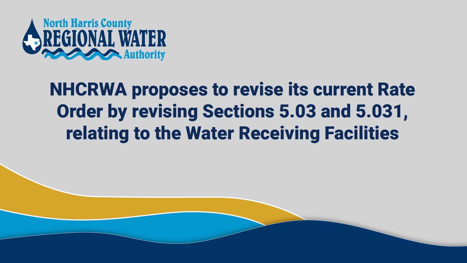 NHCRWA proposes to revise its current Rate Order by revising Sections 5.03 and 5.031, relating to the Water Receiving Facilities